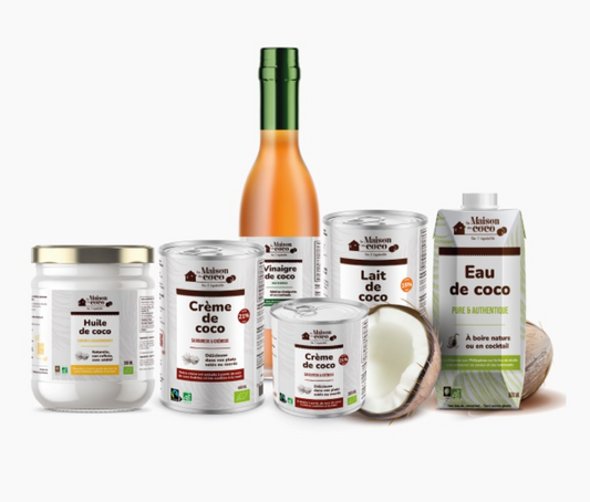 La Maison Du Coco est spécialiste des produits d'épicerie à base de noix de coco : huiles, crèmes, sucre, copeaux.... La marque utilise des noix de coco certifiées bio et cultivées dans un cadre de culture durable et équitable.